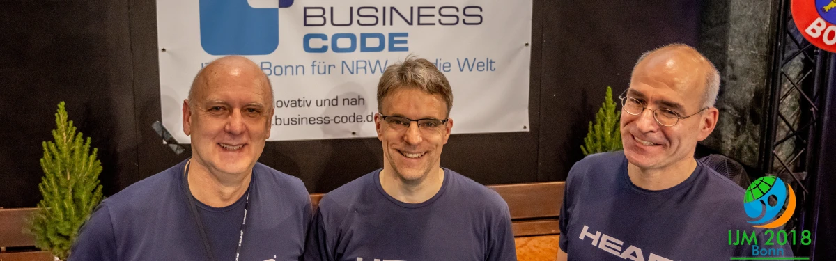 Bild: Jürgen Baró (Vorsitzender SSF Bonn), Martin Schulze (Geschäftsführer BusinessCode) und Georg Wambach (Abteilungsleiter Schwimmen).