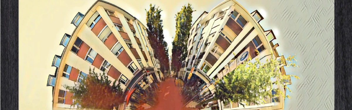 „Die Bilder für BusinessCode bestehen jeweils aus einer Aufnahme eines 360° Panorama-Bildes. Diese setzt sich aus ca. 20 Einzelbildern zusammen“, erklärt Wagener. „Der nächste Schritt war das Zusammensetzen des Panoramas, um so einen Planeten zu erzeugen, also quasi das Panorama auf eine Kugel spannen. Dann habe ich noch einen künstlerischen Effekt hinzugefügt, da wir eher ein Gemälde denn ein Foto haben wollten.“