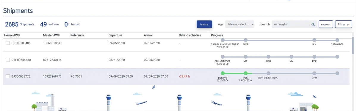 Bonn, 02. Dezember 2020 Während Endkunden nahezu jeden Schritt eines bestellten Paketes zeitnah nachverfolgen können, ist dies im Bereich B2B häufig nicht möglich. Dabei ist gerade dies ein wichtiger Faktor im Supply-Chain Management. Luftfracht ist teuer und dringlich, sie muss sicher und möglichst schnell beim Empfänger sein, wie dies aktuell für sämtliche COVID-19 Impfstoffe gilt. Tracking wird zum Muss und die IT-gestützte Begleitung der Fracht in Echtzeit schafft Transparenz über die verschiedenen Stationen auf dem Weg zum Ziel, unabhängig vom jeweiligen Transporteur.