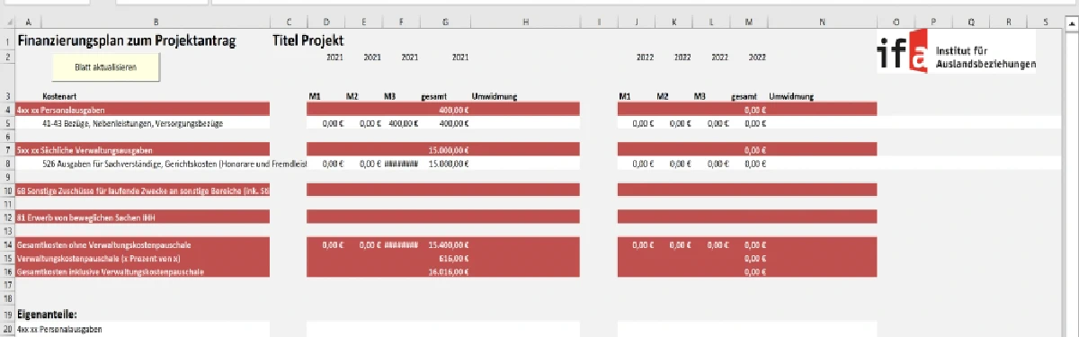Eine Kalkulation ist nur so gut, wie die Daten, auf die Excel zurückgreift. Die größte Fehlerquelle ist der Mensch, der Zahlen händisch in eine Tabelle einträgt. Um genau diese Fehlerquelle zu eliminieren, hat das ifa (Institut für Auslandsbeziehungen) BusinessCode beauftragt, eine Lösung auf Excel-Basis zu entwickeln, ohne die bestehenden Prozesse zu verändern. Dies war eine wichtige Voraussetzung für den Auftraggeber.