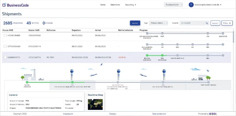 BusinessCode präsentiert innovative Tracking-Lösung für die Luftfracht: Echtzeit-Überwachung der Lieferkette für zeitkritische Transporte wie COVID-19-Impfstoffe in Zusammenarbeit mit Hellmann Worldwide Logistics.